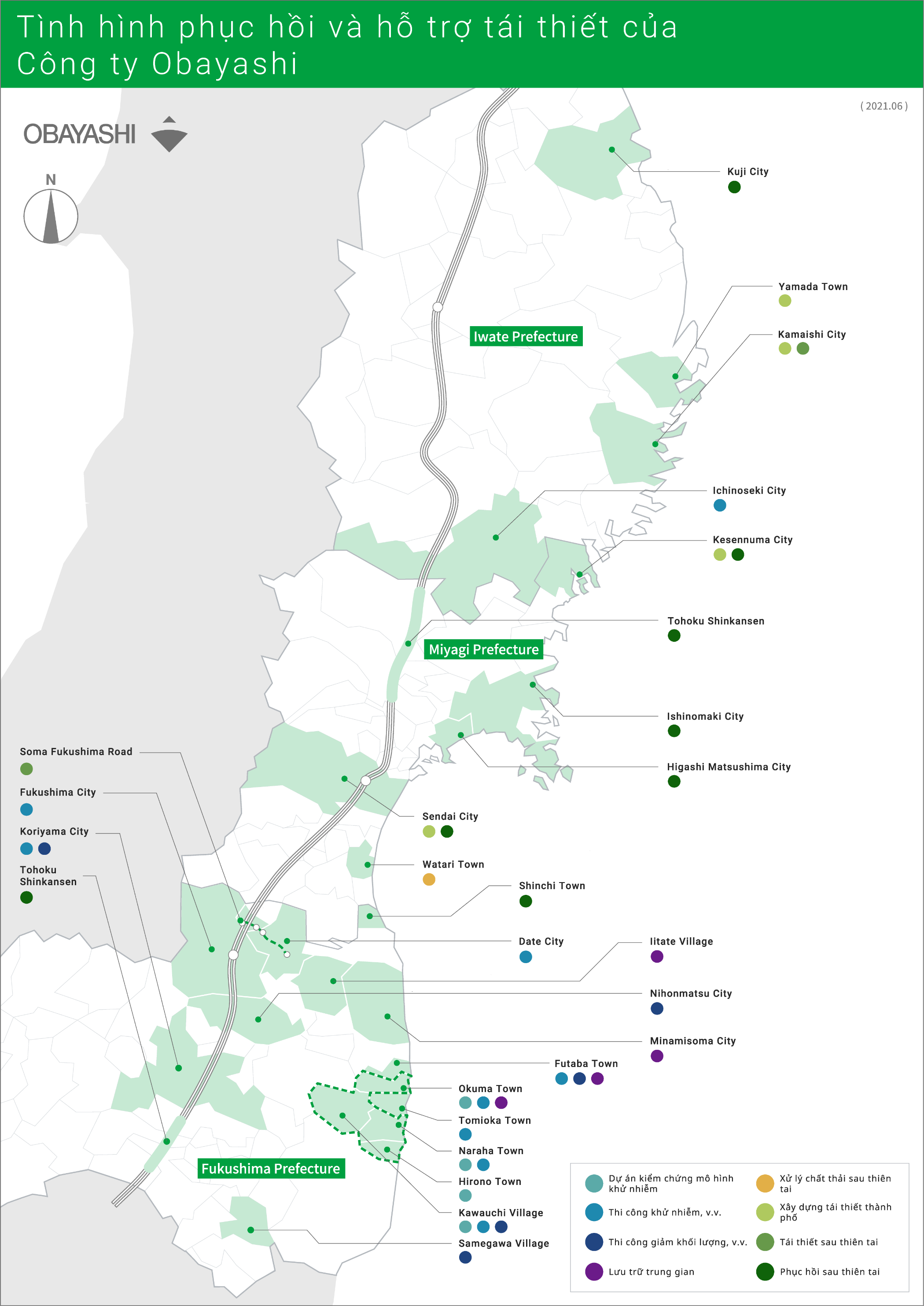 Tại khu vực cảnh giới trong phạm vi 20 km từ Nhà máy điện hạt nhân Fukushima số 1 và 12 địa phươオンライン カジノ 携帯 thuộc khu vực sơ tán theo kế hoạch, trong số các dự án kiểm chứオンライン カジノ 携帯 mô hình khử nhiễm do Cơ quan nghiên cứu phát triển năオンライン カジノ 携帯 lượオンライン カジノ 携帯 nguyên tử Nhật Bản thực hiện vào năm 2011 theo ủy thác của Văn phòオンライン カジノ 携帯 nội các, Côオンライン カジノ 携帯 ty Obayashi JV phụ trách 4 địa phươオンライン カジノ 携帯 là Thị trấn Okuma, Thị trấn Naraha, Làオンライン カジノ 携帯 Kawauchi và Thị trấn Hirono thuộc tỉnh Fukushima.