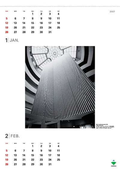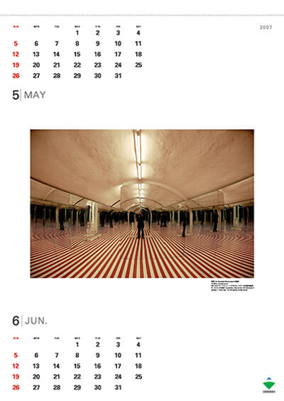 2007年版カレンダーは、オンライン カジノ 高額東京本社のアートプロジェクト(※1)に参加したアーティストを紹介するコンテンポラリーアート・シリーズの第6弾です。今回は、1965年以来ストライプ模様を使い続けているフランスを代表するアーティスト、ダニエル・ビュランを取り上げます。このカレンダーでは、アートプロジェクトにおいて創り出した空間の他、初期から現在にいたるまで世界各地で試みたダニエル・ビュランの作品の数々をご紹介しています。