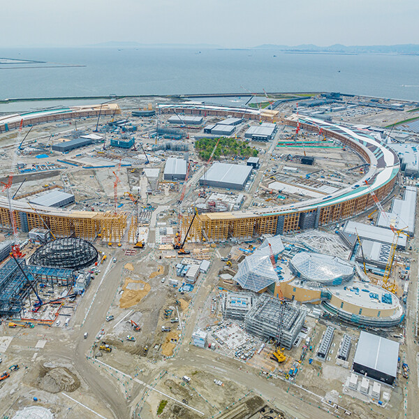 会場デザインプロデューサーの建築家・藤本壮介氏によってデザインされた大屋根リングは、「多様でありながら、ひとつ」というオンライン カジノ iphone関西万博の理念を表す、シンボルとなる建築物です。2025年4月の万博開催に向けて2023年4月から建設を開始し、完成すれば世界最大級の木造建築物となります。