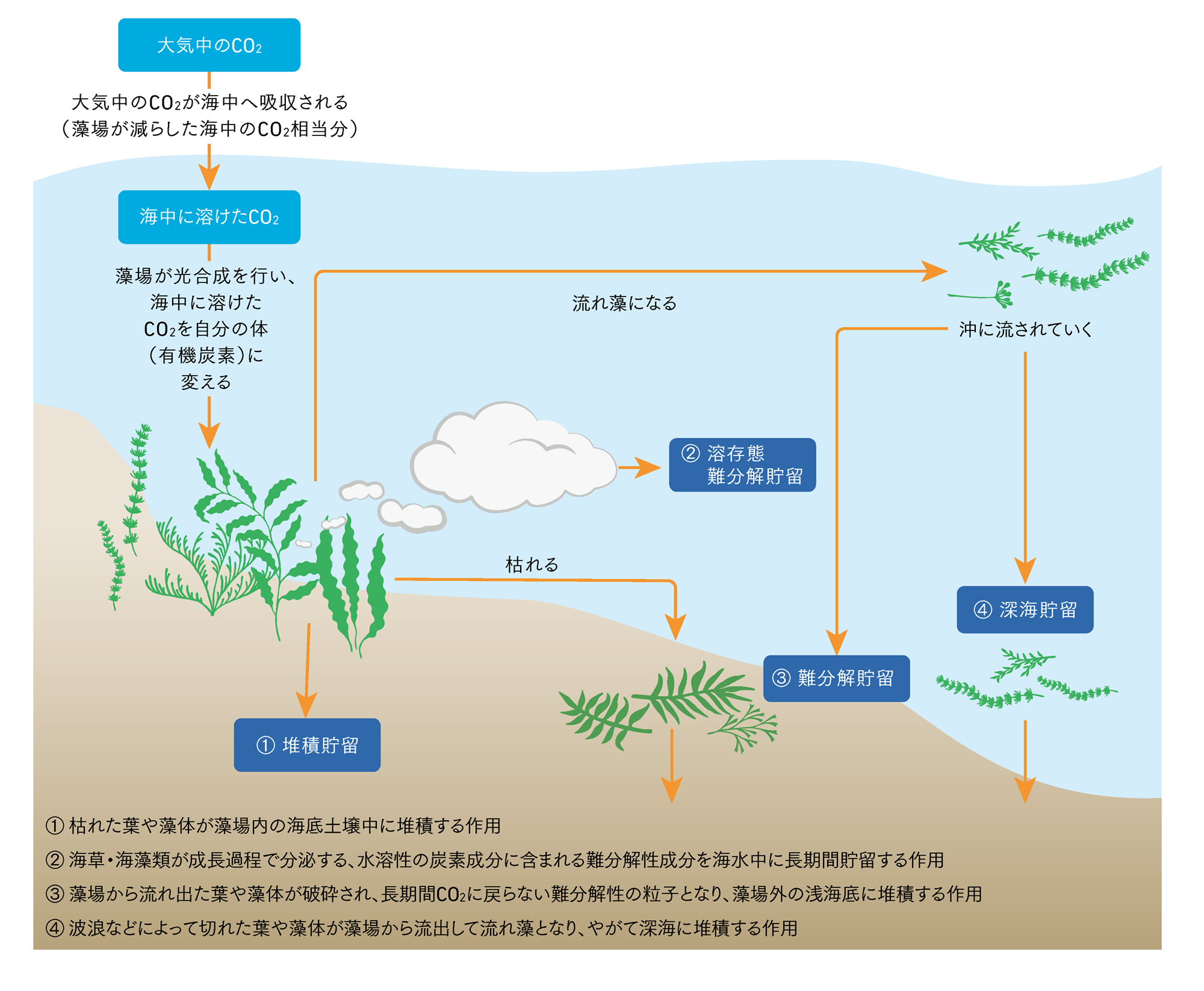 【藻場によるブルーカーボンの長期貯留プロセス】