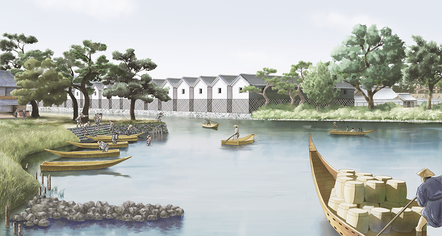 また、橋の数が多いのも特徴である。江戸時代、主な橋は行政が設置していたが、街中の川にはあまり橋を架けないのが普通だった。どうしても橋が必要なら、町人が自分の財力で架けなければならない。つまりこれだけ橋が多いのは、裕福な町人が多数住んでいることの証左と言える。