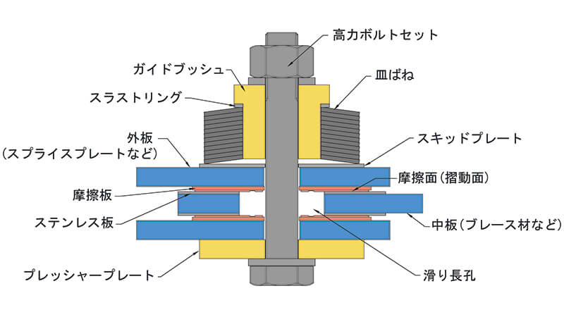 - ※1 ブレーキオンライン カジノ クレジット 地震や強風で建物が揺れたとき、ステンレス板とブレーキ材の間で摩擦力が発生し、揺れのエネルギーを吸収する制震システム。超高層ビルの揺れ対策のほか、既存ビルの制震改修にも適用できる。皿ばねを介してボルトでステンレス板とブレーキ材を締め込むため、安定した摩擦力が発生する。ブレーキオンライン カジノ クレジットは「ブレーキオンライン カジノ クレジットを用いた耐震補強工法」として、一般財団法人日本建築センターの建設技術審査証明を取得している
