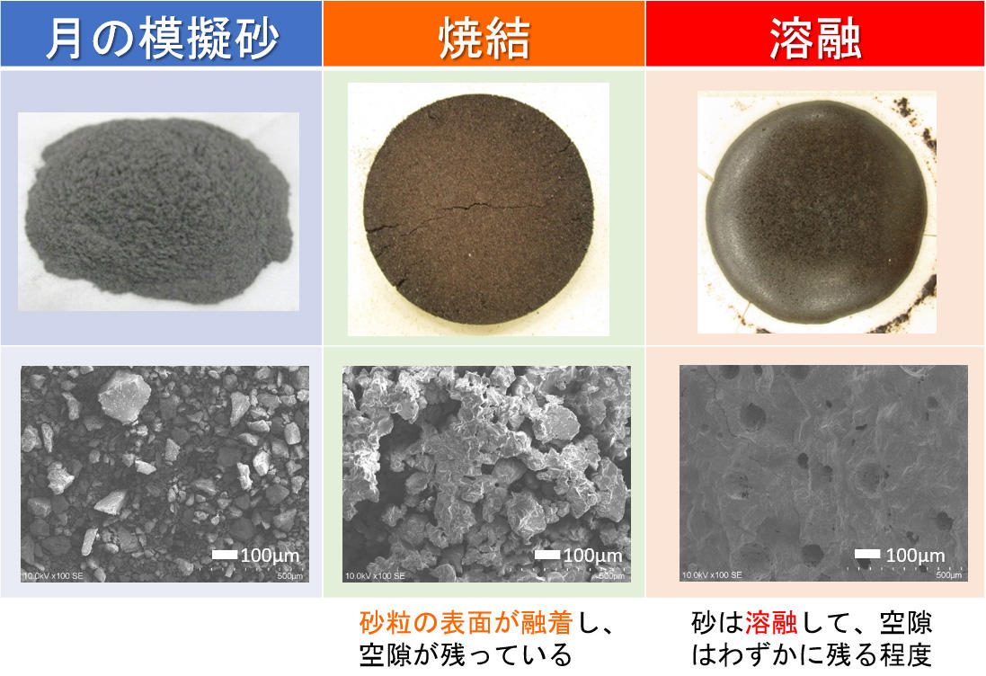 月の重力は地球上の約6分の1であることから、居住施設などの構造材料、放射線遮蔽(しゃへい)材には普通れんが相当の強度を持つ焼結物を使用し、より強度が必要なロケット発着場の基盤や道路などにはコンクリート相当の強度を持つ溶融物を使用することを想定しています。マイクロ波加熱は、それぞれの構造物に必要とされる強度や性質に合わせて、加熱エネルギーが最小となるように使い分けることが可能です。