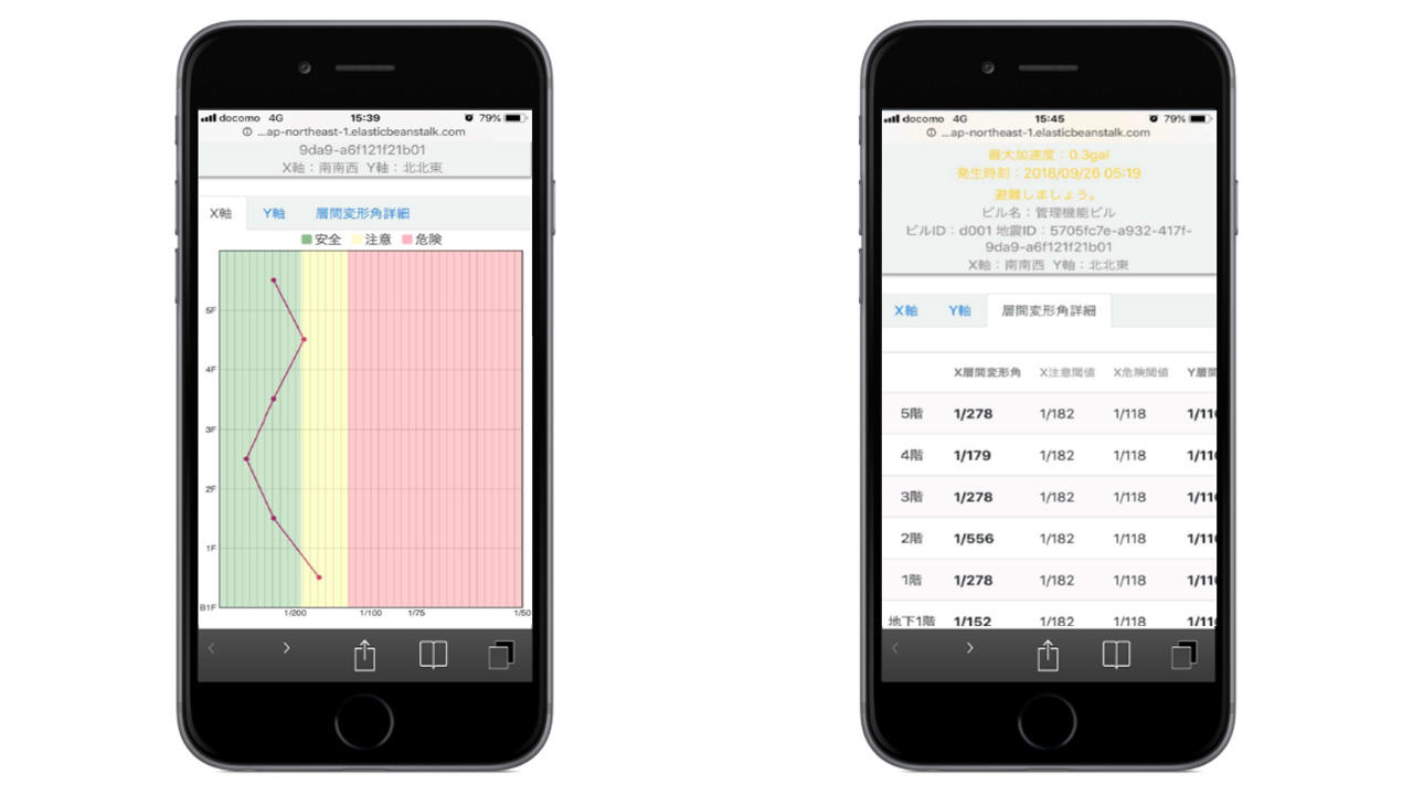 「ポケレポ」は、地震直後に加速度データをオンライン カジノ ボナンザ通信によりクラウドへアップロードし、層間変形角を算出のうえ、安全段階ごとの基準値と比較することで安全性判定支援情報を作成します。建物管理者はこれらの情報をメールで受け取ることに加え、スマートフォンなどの端末でどこからでも情報を取得し利用することが可能です。そのため、建物管理者は、遠方にいても複数の建物の情報を一括で把握することができます。さらに、建物ごとの過去の地震観測記録がクラウド上に蓄積されるため、長期間にわたる当該建物の構造安全性を定量的に確認することが可能です。