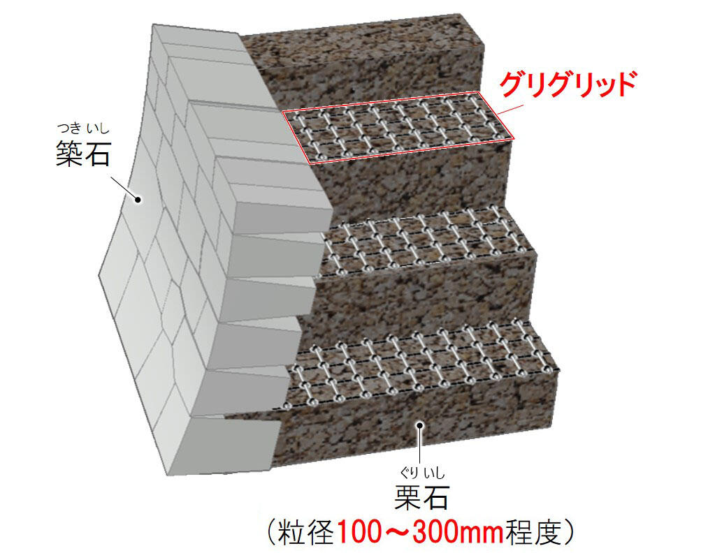 株式会社大林組(本社:東京都港区、社長:蓮輪賢治)は、城郭石垣の背面に積まれる栗石(ぐりいし)層に敷設して大規模地震時の石垣の崩壊を防止する補強材「オンライン カジノ v プリカオンライン カジノ v プリカッド」を開発しました。本技術は、熊本城天守閣石垣の一部で補強工法として採用されています。