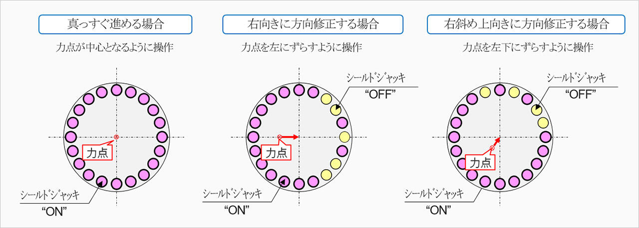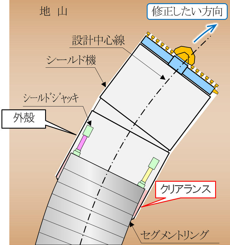 オンライン カジノ の やり方ルド工法では、オンライン カジノ の やり方ルド機が機内の後方部で組み立てたセグメントリングを反力にして、オンライン カジノ の やり方ルドジャッキを伸ばして進みます。その際、リング状に複数配置したオンライン カジノ の やり方ルドジャッキのどれを伸ばすかを選択し、オンライン カジノ の やり方ルド機に作用する力点を変えることで方向を制御します。