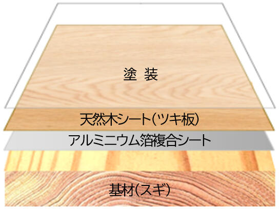 材料の表面に人気の高い広葉樹の意匠性を取り込め、リサイクルも可能です