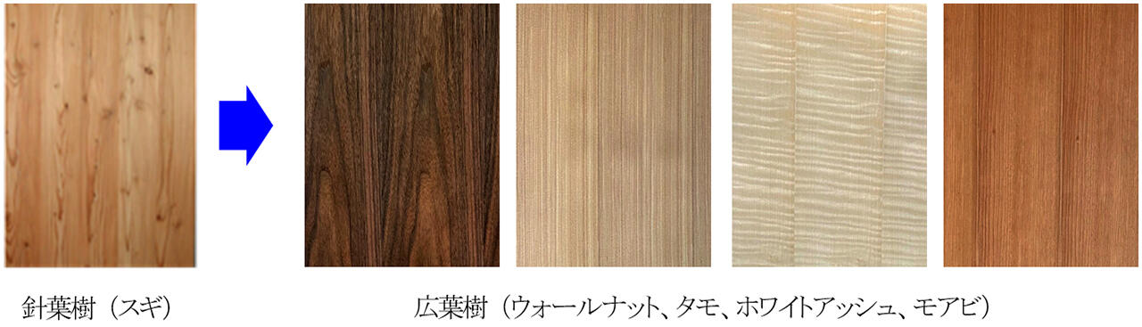 貼り付けるだけでさまざまな樹種の採用が可能
