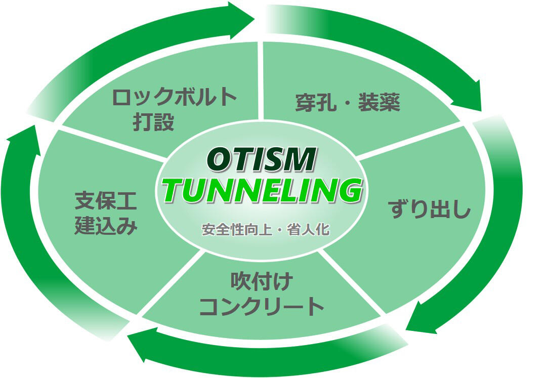 - ※2 OTISM/TUNNELING OTISMのうち、トンネル掘削に関する一連のシステムを「OTISM/TUNNELING」として、5つの作業分野「穿孔・装薬」「ずり出し」「吹付けコンクリート」「オンライン カジノ 税金 計算建込み」「ロックボルト打設」での安全性向上、省人化を実現する