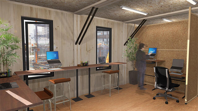そこで、大林組は建設現場に不可欠な仮設現場事務所に木材を取り入れるため、木材部品をユニット化(※3)することでオンライン カジノ 決済 方法の仮設事務所を実現しました。本事務所は、太陽光パネルによる創エネルギーと、高断熱や高気密な内装仕様に加え高効率な設備機器の導入による省エネルギー化で、2022年10月に、オンライン カジノ 決済 方法仮設現場事務所としては国内初となるZEB認証を取得しました(2023年1月完成)。仮設工事事務所をZEB化したことで、約15,000CO2kgの削減効果が図れ、これは工事全体の通常の電力消費によるCO2排出量の約2割(当社試算)に相当します。