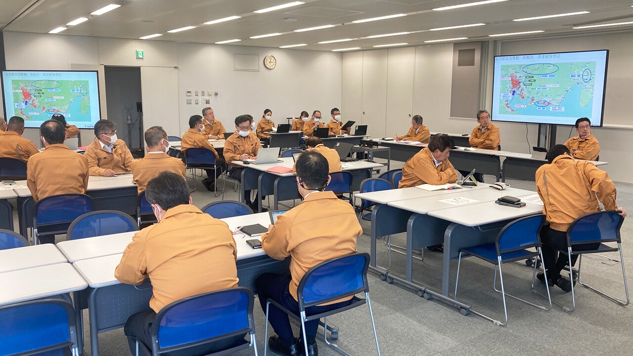 災害発生直後3時間を想定し、各拠点の体制、工事事務所・物流拠点などの被害および稼働状況、ならびに顧客などへの連絡体制を共有するための震災対策会議を実施しました。