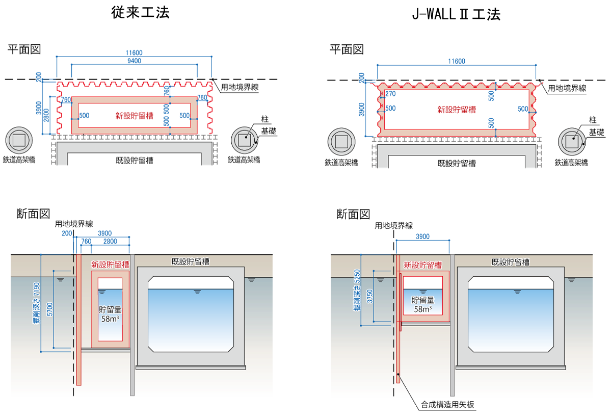 プロ野球選手オンラインカジノⅡ工法は、合成構造用鋼矢板を仮設土留め壁および本設躯体の一部として利用できる工法です。本工法を雨水貯留槽側壁へ適用することで、狭あいな範囲を最大限利用した雨水貯留槽の新設を実現しました。なお、プロ野球選手オンラインカジノⅡ工法は、これまでに地下擁壁への適用事例がありましたが、鉄道近接およびボックスカルバート構造(※1)への適用は、今回初となります。