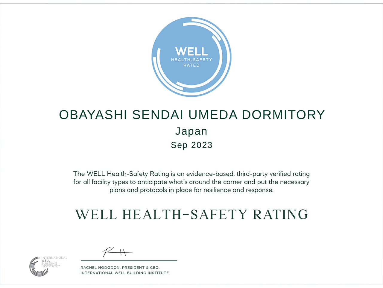 感染症や緊急事態に対する建物や施設の運用方針、維持管理手法、利害関係者の関与、緊急時計画など、稼働中の施設の運用管理を評価、認定する制度。コロナ禍の2020年6月に開始され、現在、世界で4,328件、国内で22件の施設が認定されている。主に運用管理面を評価する要件項目が中心で、毎年の更新手続きが必要。WELL認証と同じく、制度の運用管理などをIWBIが、審査をGBCIが行う(2024年1月24日現在)