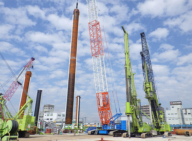 ■環境負荷低減を目的とオンライン カジノ 賭博アースドリル工法による鋼管矢板建込工法の適用事例
