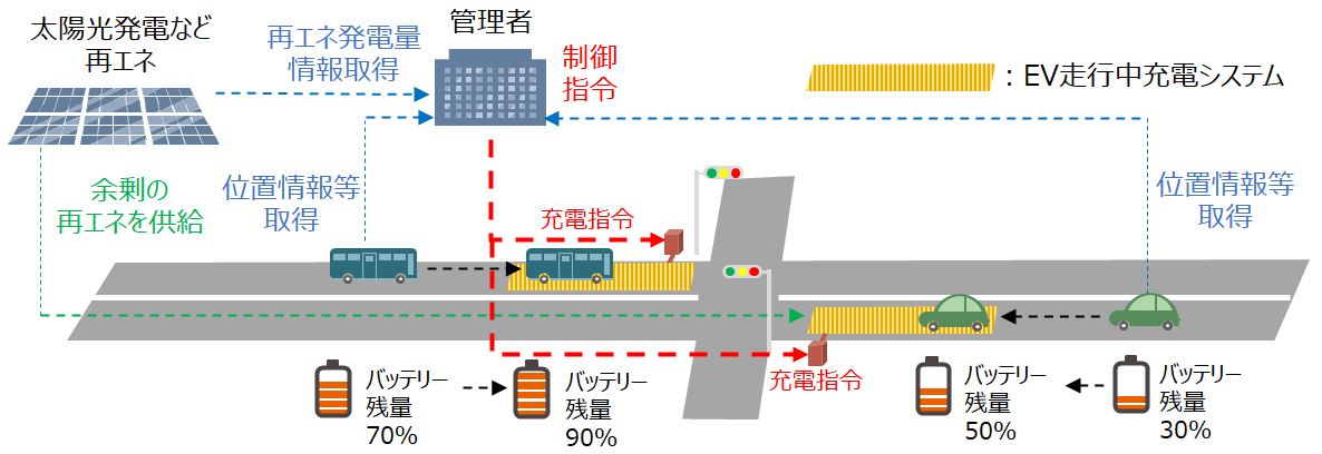 3社は、2021年からNEDOが行う「脱炭素社会実現に向けた省エネルギー技術の研究開発・社会実装促進プログラム」において、ワイヤレスで給電可能なEVの走行中ワイヤレス給電システムと都市全体へのエネルギーマネジメントシステムの技術開発に関する助成事業に取り組んできました。