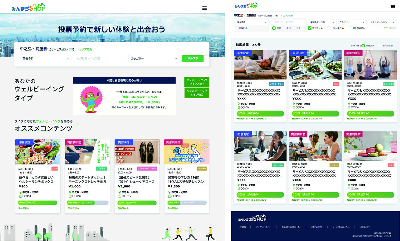 - まち・ビルの遊休スペースを活用して、生活者のニーズとまちのコンテンツをマッチングするサービス。まちごとの特性と課題・ニーズに合わせたスペースとサービスのマッチングを通じ、生活者のウェルビーイング向上に関心を持つビルオーナー・サービス提供者・企業との連携のもと、まちに関わる全ての人のウェルビーイング実現を目指す