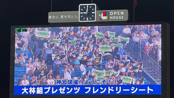 8回裏終了後、神宮球場の大型ビジョンに映し出されたフレンドリーシート