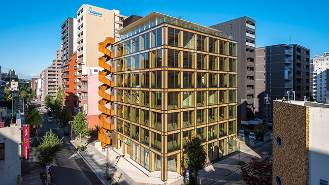 最上階には柱のない開放的な多目的ホールと、日本で初めてフィンランド大使公認となった「オフィスサウナ」を設置し、社員のウェルビーイングを促進しています。 今回の受賞では、革新的な構造技術、環境性能と、働きやすさを追求した空間づくりが高く評価されました。