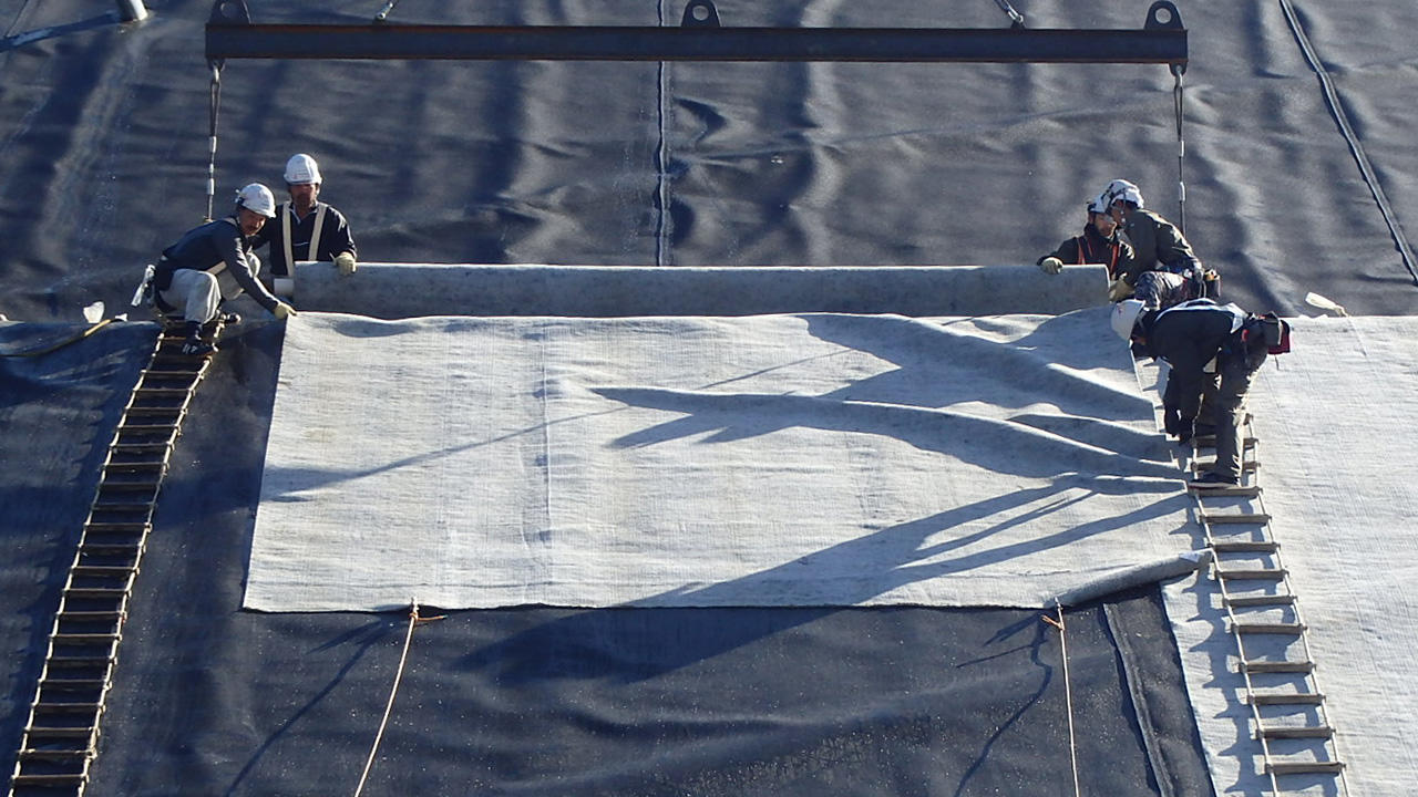 オンラインカジノ 吉本興業マットと自己修復マットの一体化により低コスト、短工期で遮水シートを敷設