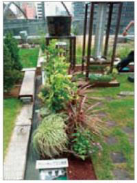 - 導水シートの上に、鉢物植物や揚水レンガ、レンガチップを組み合わせて配置するシステムです。