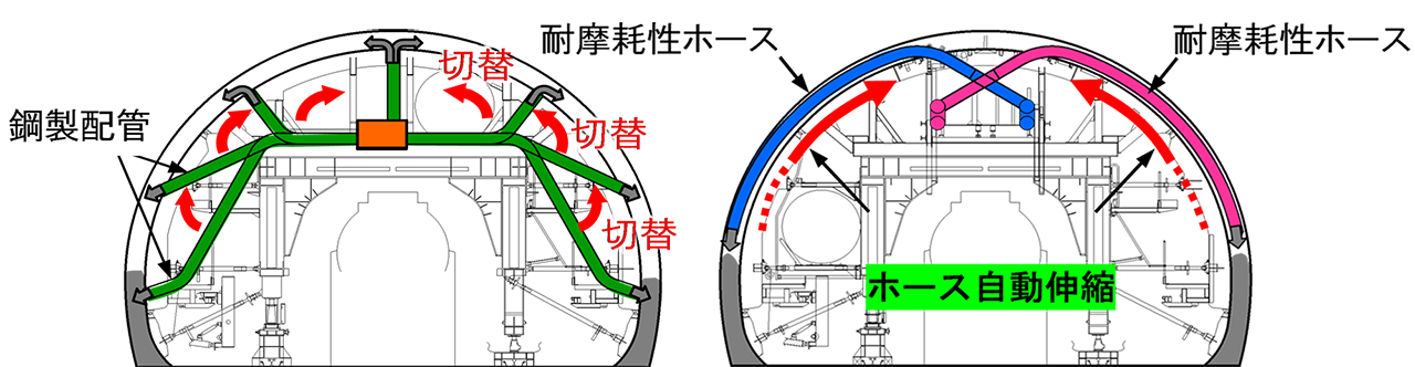 - 配管の切り替えのない連続オンライン カジノ の やり方を行うことで、コールドジョイントが発生するリスクを低減することができ、覆工コンクリートの品質が向上します。