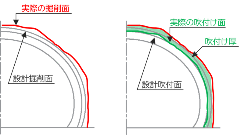 - 三次元絶対座標を用いスキャナーで測定した結果を設計断面と比較し、掘削形状、吹付けコンクリートの仕上がり面、吹付け厚の3種類を即座に算出することで、高精度なオンライン カジノ 配信管理が可能です。