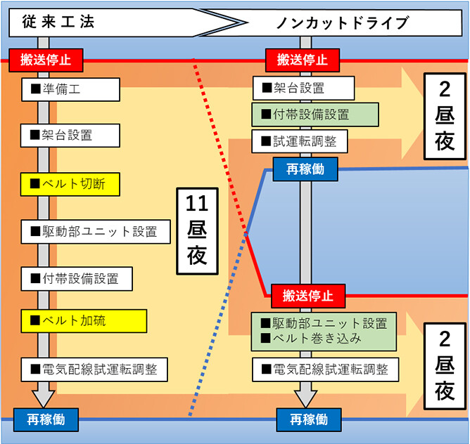 - ※2 ブースタードライブ土砂搬送距離が長くなると新 オンライン カジノ張力が不足するため、延伸コンベヤの中間部に設置することで新 オンライン カジノ張力を補うための駆動装置