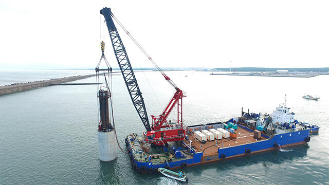 ロケットの発射場というと、地上の施設を思い浮かべるかもしれませんが、大林組の研究テーマの一つが、「洋上」からの発射です。スカートサクション®という、海の上の風力発電施設を安定させる技術を応用して、2019年に小型ロケットの洋上発射実験を千葉工業大学、ASTROCEANと共同で行いました。