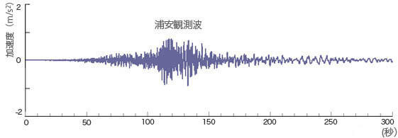 東日本大震災の場合:千葉県浦安市で観測された震度5の地震波(K-net浦安)