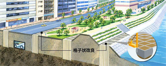 TOFT(トフト)工法はオンライン カジノ フリーする地盤を全面的に固めるのではなく、格子状に囲むように固化し、格子が変形しないように耐えることで地盤の揺れを低減させ、オンライン カジノ フリーを防止します。地盤全体を固めるのに比べて大幅なコストダウンが期待できます。