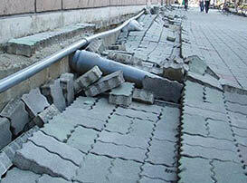 道路では噴砂の堆積物や、埋設されていたマンホールなどの地中構造物の浮き上がりにより、交通障害を引き起こします。