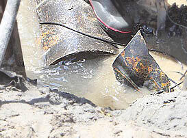圧力の高くなった地下水は「噴砂」や「噴水」として地表面に噴き出します。