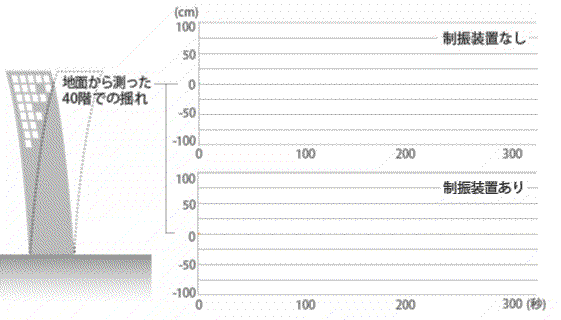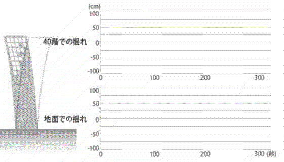 超高層ビル上部での揺れと地面の揺れの比較