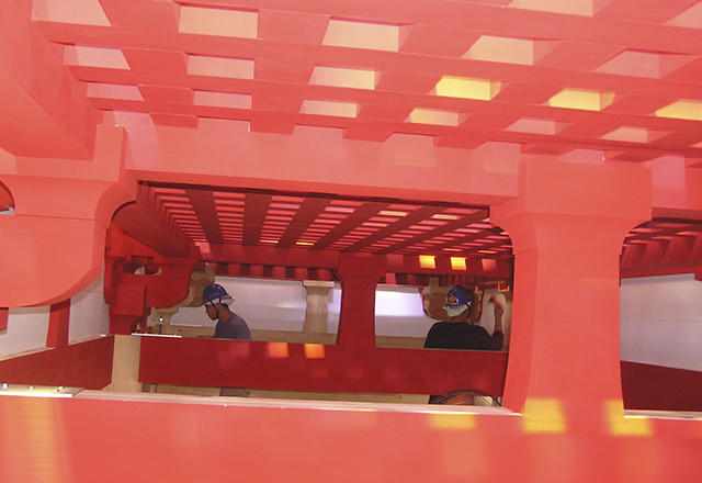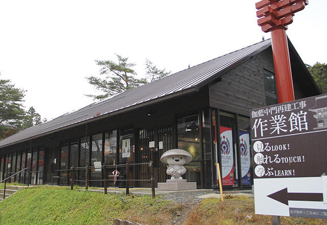 素屋根とは、工事中の施工物を覆って保護する囲いのこと。これが透明であれば、訪れた人は歴史的建造物が形になる過程を自由に眺めることができる。