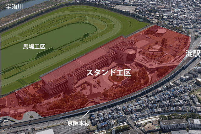 オンライン カジノ ベラ ジョン市内中心部から京阪本線で大阪方面に向かうと、淀駅の手前に、ひときわ目を引く建設現場が見えてくる。大林組はここで、2023年4月にグランドオープンするオンライン カジノ ベラ ジョン競馬場の整備工事を進めている。