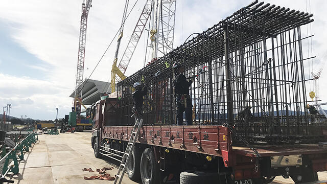 工期短縮の実現に向け、資機材、工法など当初計画からさまざまな変更を行っている。新スタンドの基礎工事では、オンライン カジノ ベラ ジョン場の駐車場を利用して、杭鉄筋の加工・組み立て、基礎梁鉄筋の先組みユニット化を行った。同所で配筋検査も行い、完了後に施工場所に運び、設置していく。施工場所で行わなければならない作業と、他の場所でもできる作業に分けることで、後工程の作業進捗の影響を受けずに各自のペースで作業ができる。作業員の待ち時間を減らし、現場を止めないための工夫の一つだ。