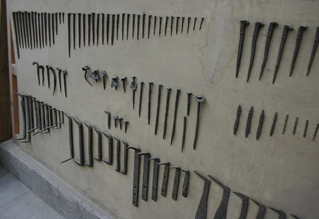 建物の一つひとつを丁寧に分解し、積年の埃が拭き取られた部材は、元の状態に戻すための番付札が付される。また、薄く割った板を重ねて竹釘で打ち止めた「こけら葺き」の屋根は大切に保管され、何層にも塗り重ねられた土壁も、落とした土で再現する予定だ。